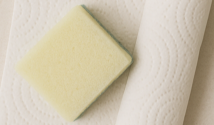 키친타월에 미지근한 물을 적셔 상판 표면의 부스러기, 굳은 소스 등을 먼저 걷어내요. 그다음 주방세제를 물에 살짝 풀어 스펀지로 원을 그리듯 가볍게 닦아줍니다.(이 단계에서 힘주지 않기!) 기름막이 풀리면 다음 단계가 쉬워져요.