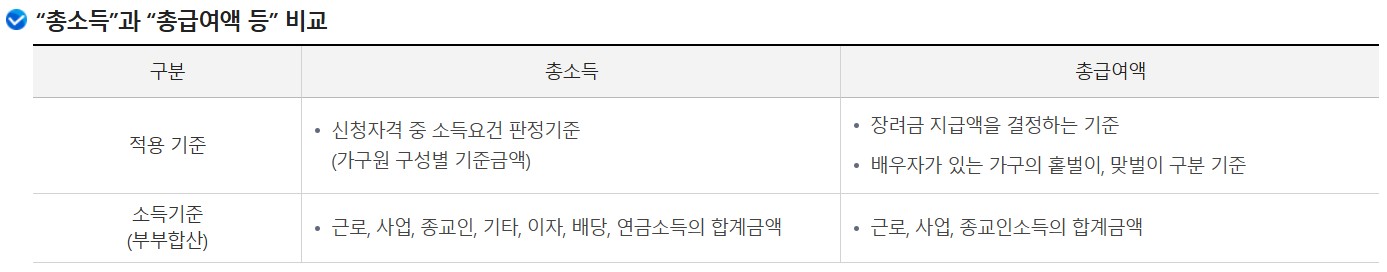 - 대상: 전년도 전체 소득을 기준으로 심사