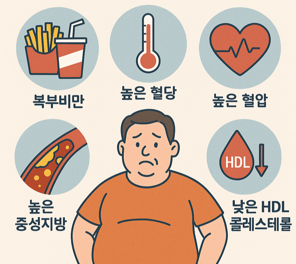 대사증후군이란 복부비만·혈압·혈당·중성지방·HDL(좋은 콜레스테롤) 중에서 3가지 이상이 동시에 비정상일 때를 말합니다. 즉, “아직 병은 아닌데 위험 신호가 켜졌다”라는 뜻에 가까워요. 그래서 대사증후군이란 단어를 만났다면, 지금이 생활습관을 리셋할 골든타임이라고 이해하시면 됩니다.