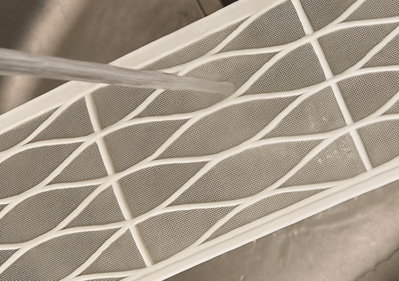 - 흐르는 미지근한 물로 먼지를 씻어냅니다.(물세척 가능 필터인지는 설명서를 꼭 참고하세요.)