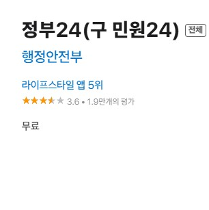 - □ 정부24 앱 공식 스토어에서 설치(개발자: 행정안전부)